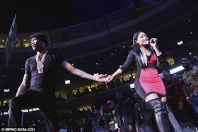Nicki Minaj and Meek Mill share a kiss while performing on stage