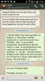 I decided to move. So that he could get used to not seeing me.I sent him a text on December 9. I wanted my peace. That was why I relinquished the land and all…He sent a picture of himself in his kitchen.